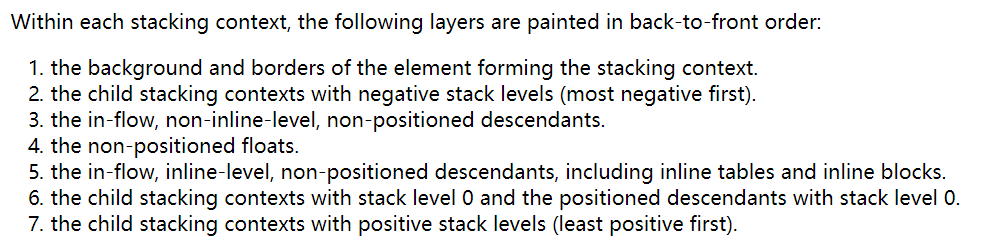 其实层叠等级和层叠顺序在官方文档中没有明确的定义(有可能有,但我没找到),他们只是文档中层叠上下文中用法中偶尔出现了几次的名词,所以我就用自己的理解来下定义了